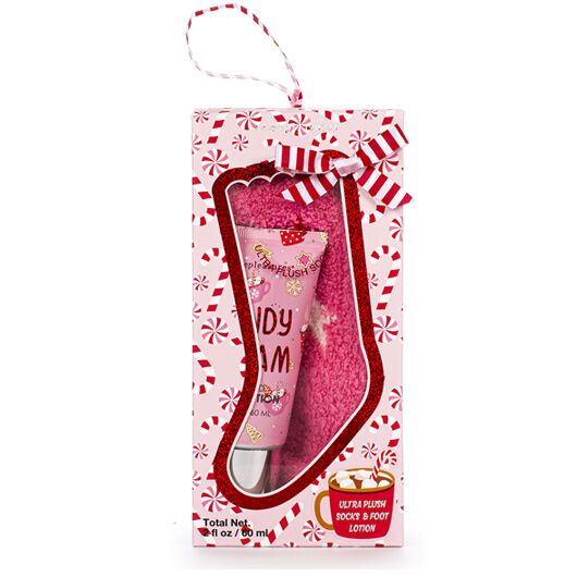 Σετ δώρου με 1 ζευγάρι κάλτσες και κρέμα ποδιών με άρωμα Candy. Τέλεια ιδέα για Χριστουγεννιάτικο δώρο!
