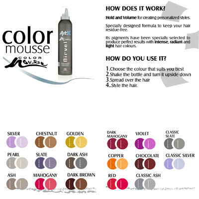 Διαθέσιμο σε 7 χρώματα: silver, chestnut, red, copper, chocolate, classic ash and dark ash.