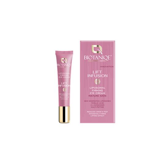 Liposomal Firming Eye Cream reverses the visible signs of aging. Rich formula brings the feeling of immediate wrinkles reduction and smoothing. Intensively firms and perfectly moisturizes the skin. The combination of Ferulic Acid, 3x Ceramides and Multi-Peptide stimulates collagen renewal and provides strong firming effect. The formula enriched with Pigment Soft Glow TM optically refreshes the look. Vegan cosmetic. 95% ingredients of natural origin. Dermatologically tested.