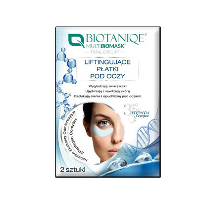 herbsBiotaniqe Total Eye Lift is an intensive rejuvenating treatment for the delicate skin around the eyes. A unique combination of the active 3’Peptygen Complex and Natural Rejuvenating Extracts encapsulated in perfectly shaped pads has a deep and intense anti-aging and lifting effect on your skin. Suggested usage: 1. Wash and dry your face. 2. Remove the pads from the package and place them under your eyes. Press them gently onto the skin for proper adhesion. 3. Leave them on for 20 minutes for the active ingredients to take effect. 4. Remove the pads and use your fingertips to gently massage the area in circular motions to enhance the effect of the product.
