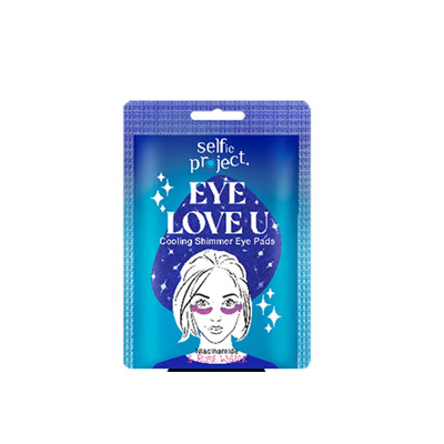 Cooling and refreshing Eye Pads "Eye Love U" with stunning blue glitter to make you glow, Niacinamide and Rose Water reduce signs of fatigue and puffiness, soothe the skin under the eyes and improve color, skin tone. Brighten up your gaze with the new Selfie Project patches.